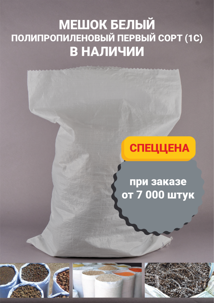 Мешок белый полипропиленовый первый сорт (1С) в наличии !